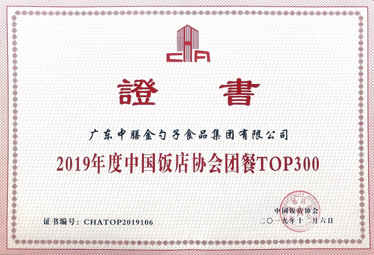 喜訊|中膳金勺子食品集團(tuán)榮膺2019年度中國(guó)飯店協(xié)會(huì)團(tuán)餐300強(qiáng)