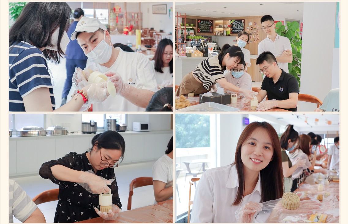 9月26日,金勺子團餐項目439門店(廣州某設計所職工食堂)開展富有中國傳統特色的手工月餅制作活動。工作人員提前裝扮活動區域、備好食材,邀請職工們一起動手制作月餅。在食堂工作人員的指導下,職工們紛紛挽起袖子大顯身手,熟練地包餡、壓模,制作出一個個精美的月餅。
