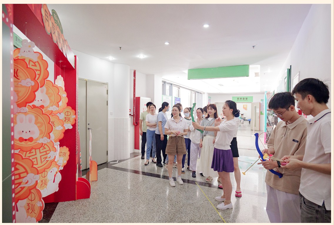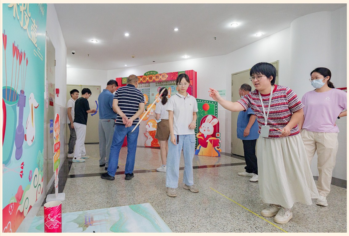 9月27日,金勺子團餐項目366門店(廣州某醫院職工食堂)組織開展一場別開生面的中秋活動,現場熱鬧非凡,節日氛圍感拉滿。在活動現場,職工們在現場排隊參與《射懸月》和《趣味投壺》活動,一起感受中秋傳統文化的魅力,一起體驗古代射手的樂趣。