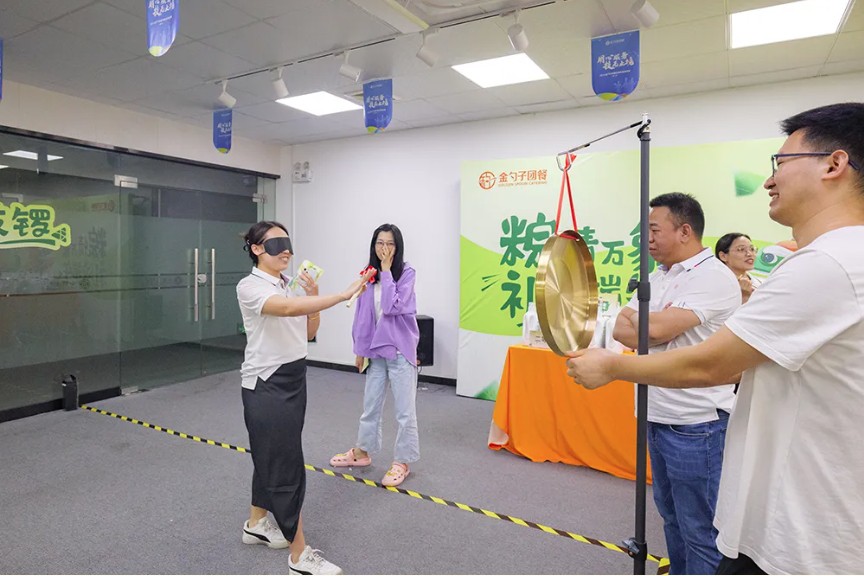 《蒙眼敲鑼》游戲中,參與者需在蒙眼的情況下,憑感覺找到鑼的位置并敲響。這一游戲讓員工們體驗(yàn)到了信任與默契的重要性。